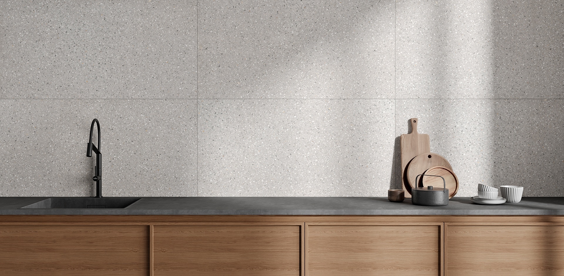 Terrazzogulve blev første gang brugt i Venedig, Italien, i midten af det 15. århundrede. Disse gulve blev oprindeligt anvendt til at belægge terrasserne omkring boliger – og det er netop denne inspiration, der ligger bag lanceringen af A33. En traditionel og omhyggeligt udformet terrazzo med subtile skinnende effekter, som tilføjer realisme til fliserne. Serien består af et komplet sortiment af rektificerede porcelænsfliser, suppleret med en dekorationsflise kaldet Lettere, som giver kollektionen ekstra karakter og stil.